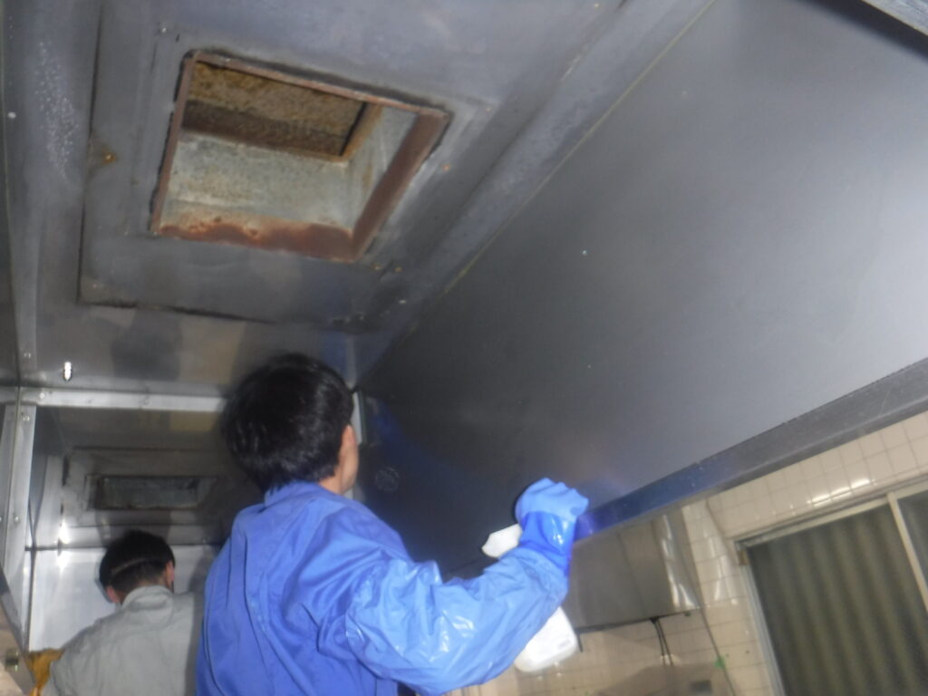 🔧 レンジフード・ダクトの徹底清掃 🔥 ダクト火災リスクを低減 🏢 大型現場・複数店舗も対応可能